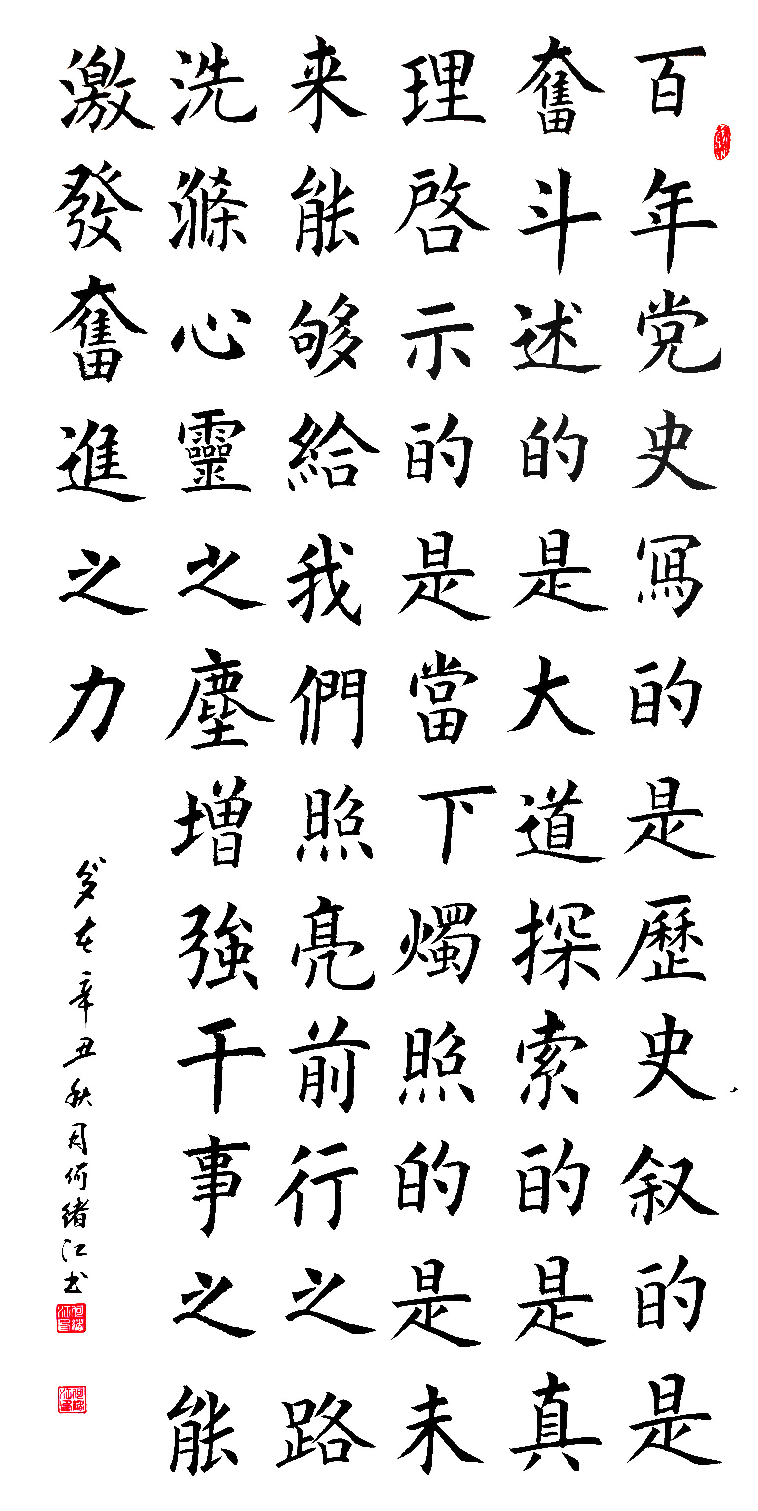 何绪江,男,陕西延安人,生于1969年,中共中央党校函授学院毕业于经济管理系。现为北京中宣盛世国际书画院会员、中国楹联学会中宣盛世文化艺术交流中心会员,陕西省延安市书法家协会会员,陕西省延安市富县书法协会会员。秦直书画苑理事长,何氏书画苑理事长。2018年在第四届全国书画美术大赛中荣获优秀奖,2019年作品《延安精神》在“庆祝中华人民共和国成立七十周年职工书画摄影大赛”中荣获优秀奖,2020年在《现代名家·华夏荣誉杯》全国书画艺术大赛中荣获优秀奖,2020年获“艺巡中华·美耀中国杯”书画大赛书法组三等奖。